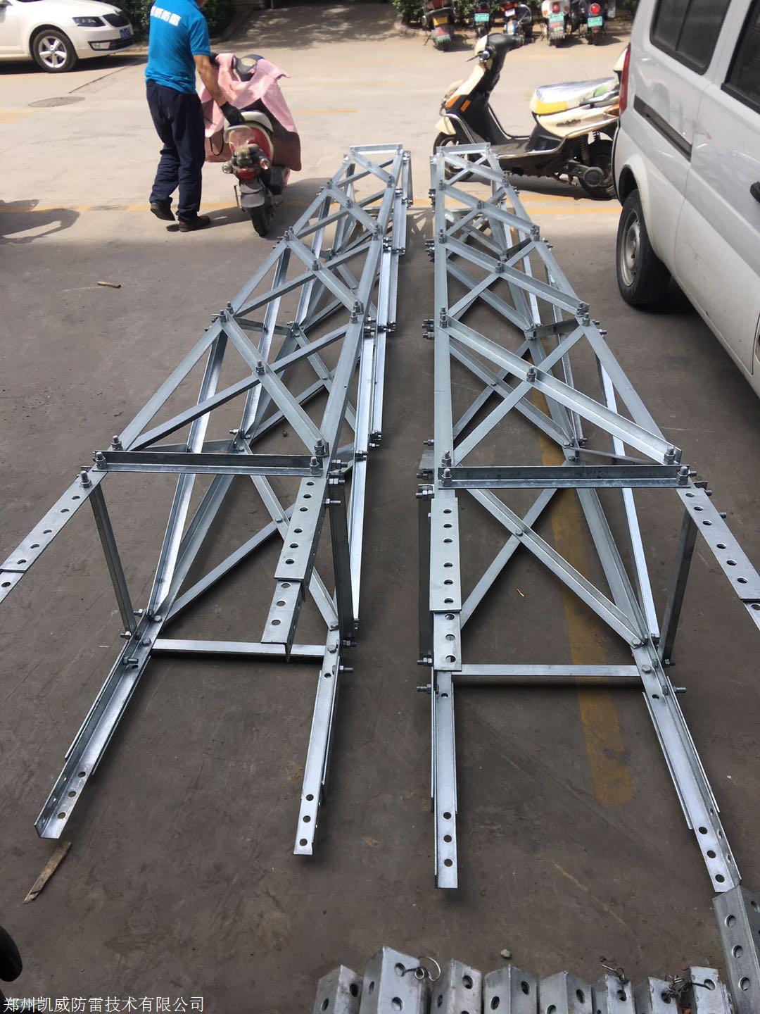 材選用Q235B材質(zhì),整體在凱威防雷公司車間內(nèi)加工,試拼裝無誤后熱鍍鋅,鍍鋅厚度要求:厚度3-6mm的工件鍍鋅厚度不小于70um;其他厚度的工件不小于85um。