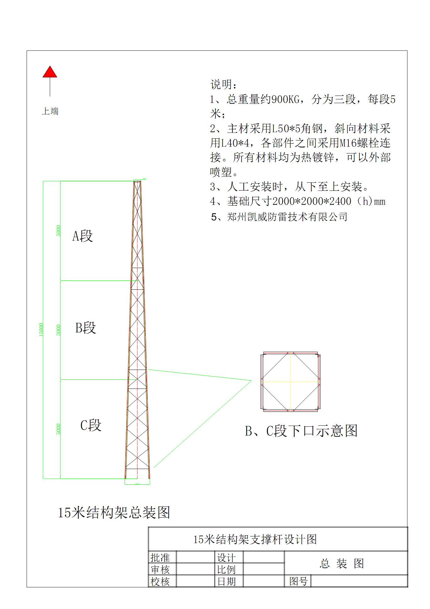主材、斜材、橫材、包鋼規(guī)格尺寸按15D501的規(guī)格要求,并采用標(biāo)準(zhǔn)或市場上負(fù)偏差*小的材料或大于規(guī)范要求的材料;各部件采用M16螺栓連接,包鋼采用M16和M20螺栓連接。每個(gè)包鋼的螺栓數(shù)量不少于12個(gè)。